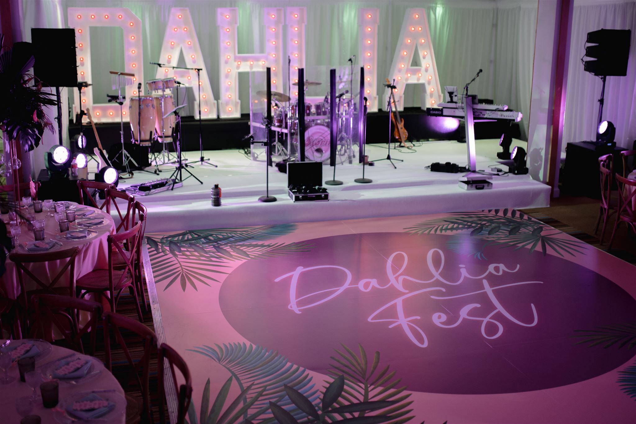 What we love most: The white gloss dancefloor with personalised ‘Dahlia’ vinyl design combined with the 6ft light-up letters. Talk about a fantastic party focal point!