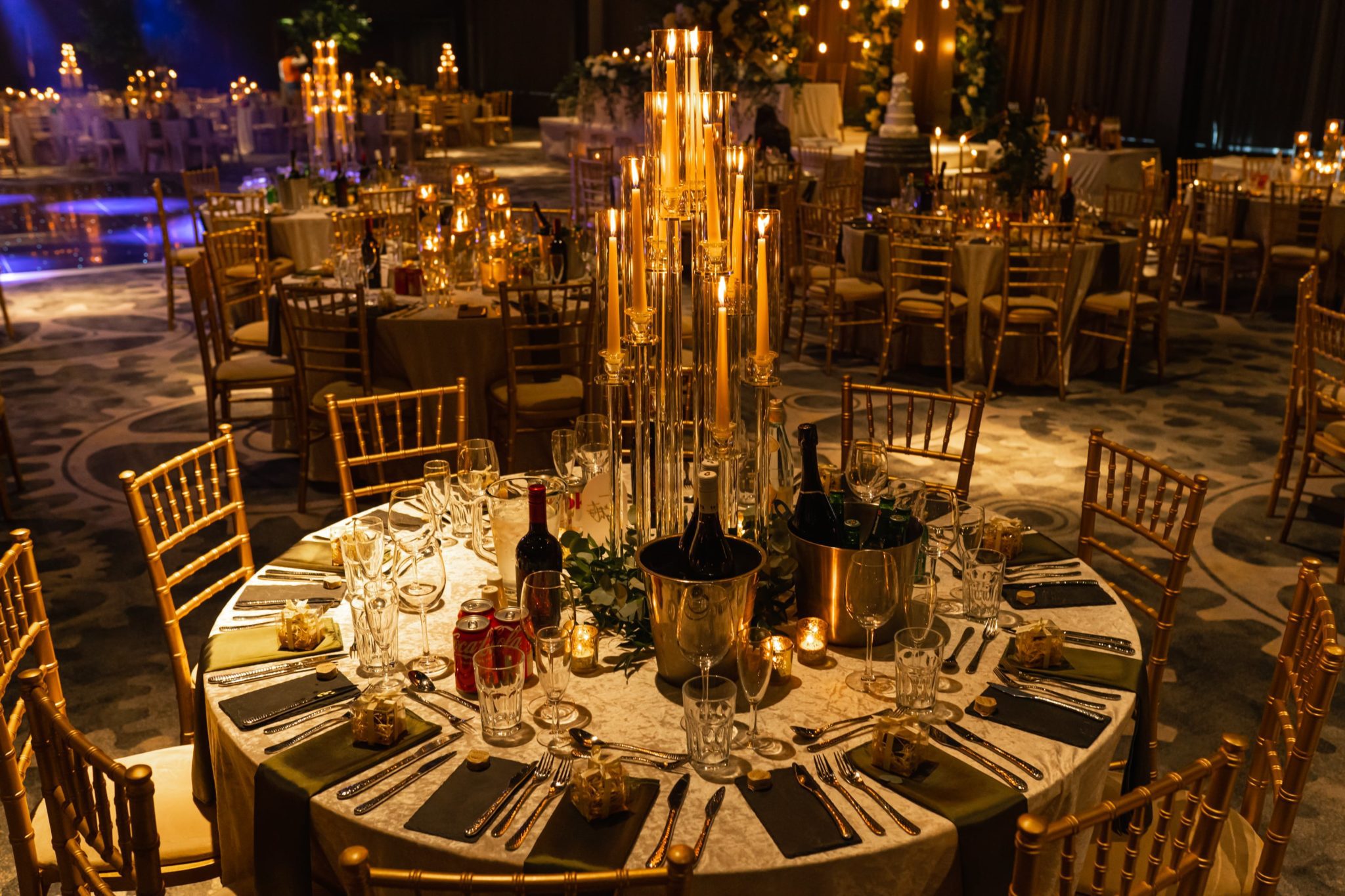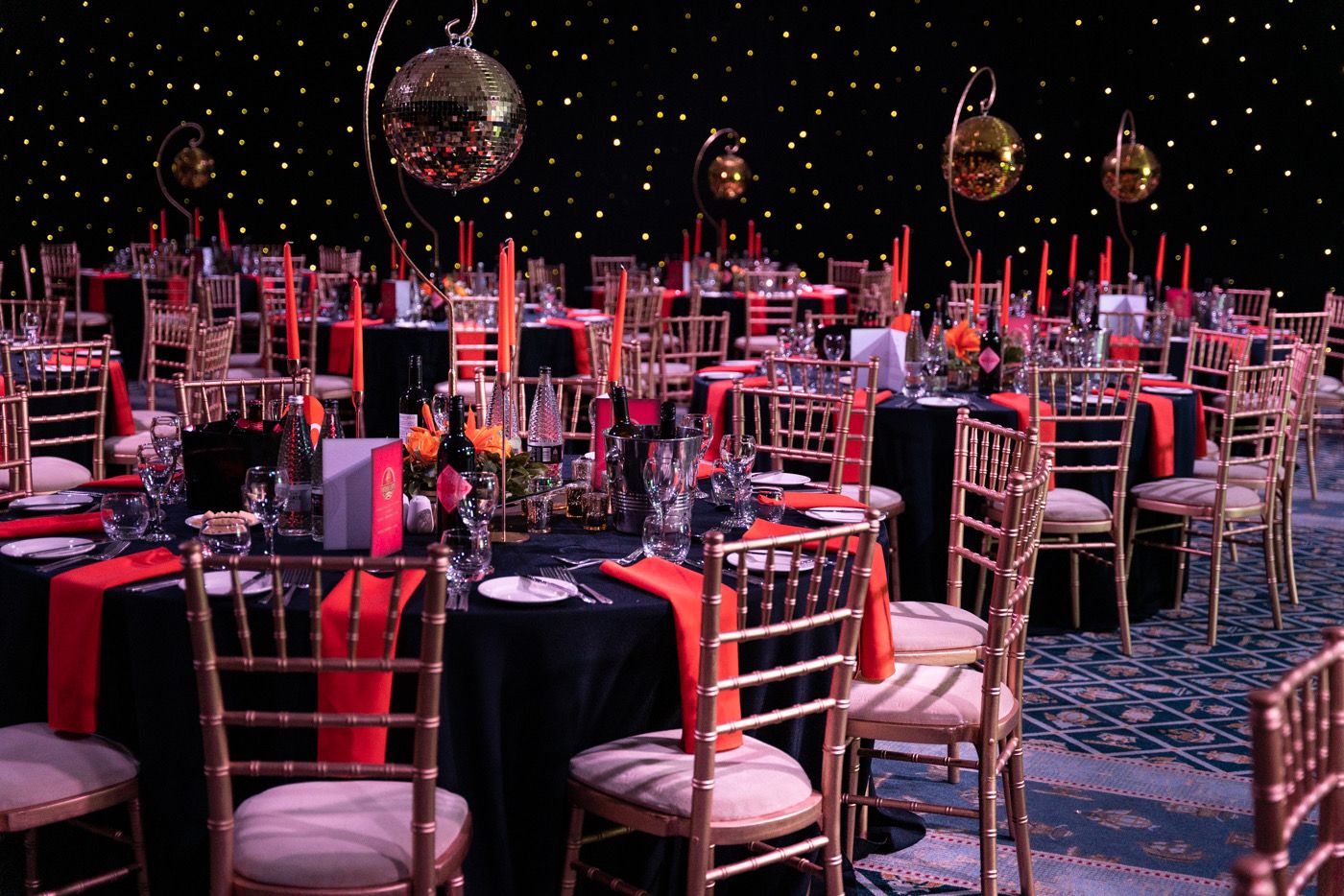 What we love most: The gold glitter ball centrepieces, which really add to the high-end, celebratory feel of the event.