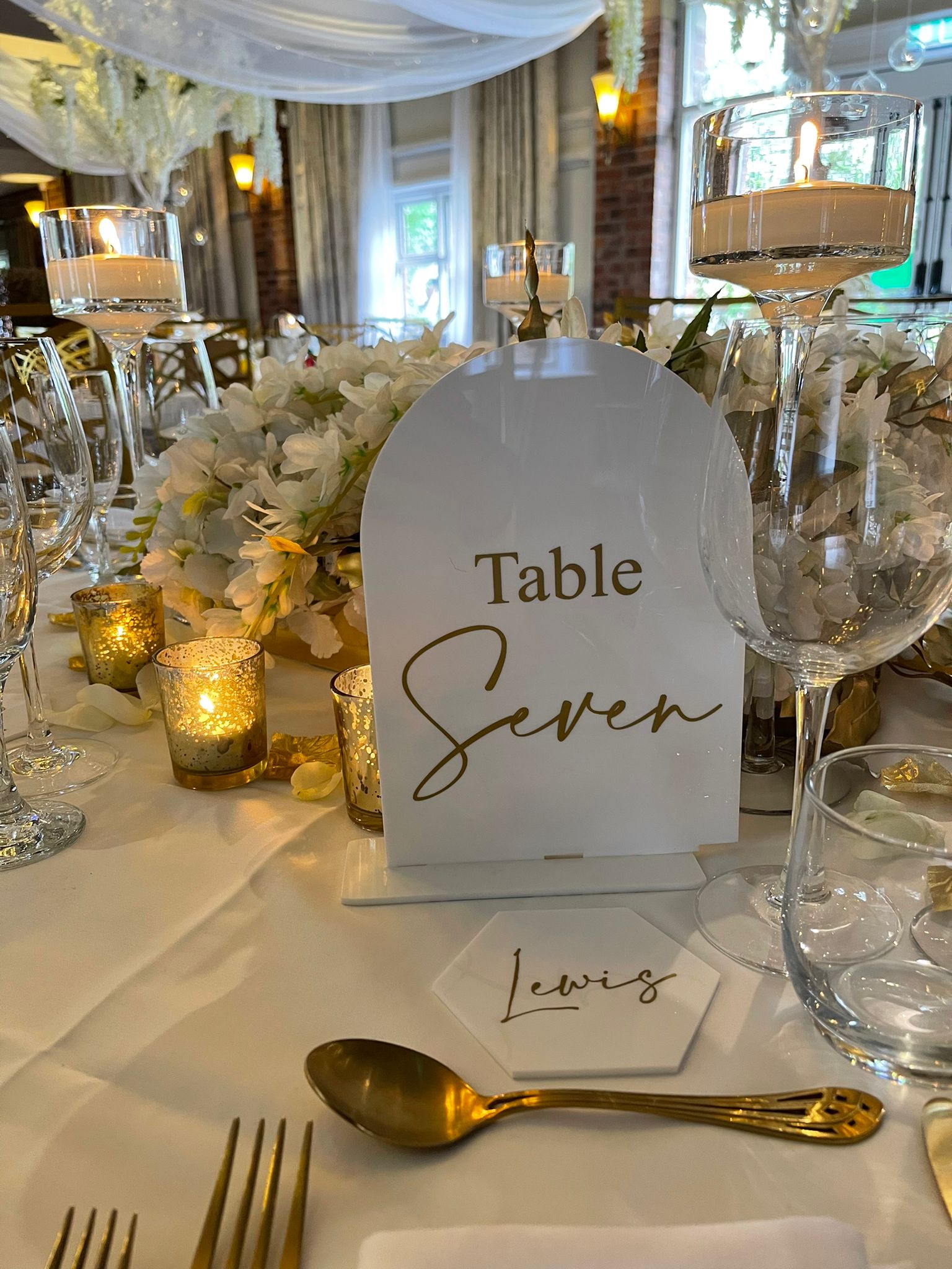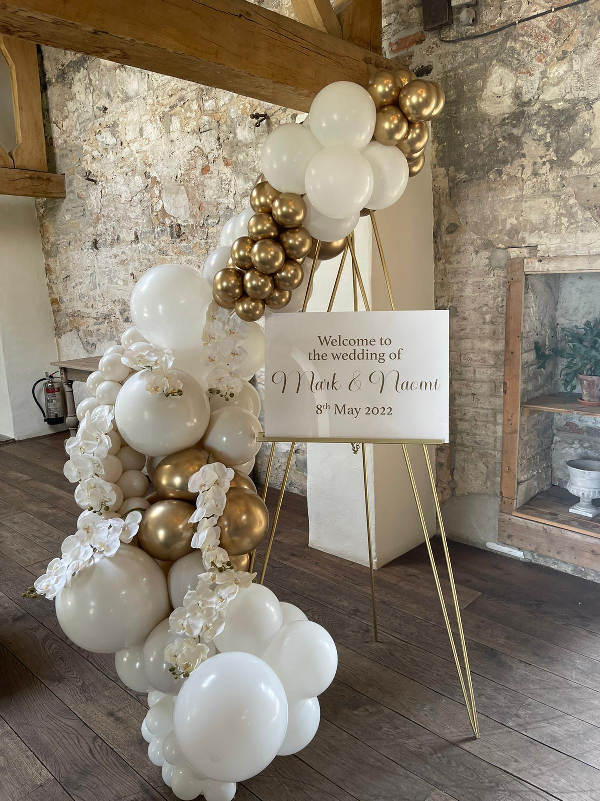 What we love most: We loved creating their seating plan display, complete with modern acrylic signage and a lavish balloon garland!